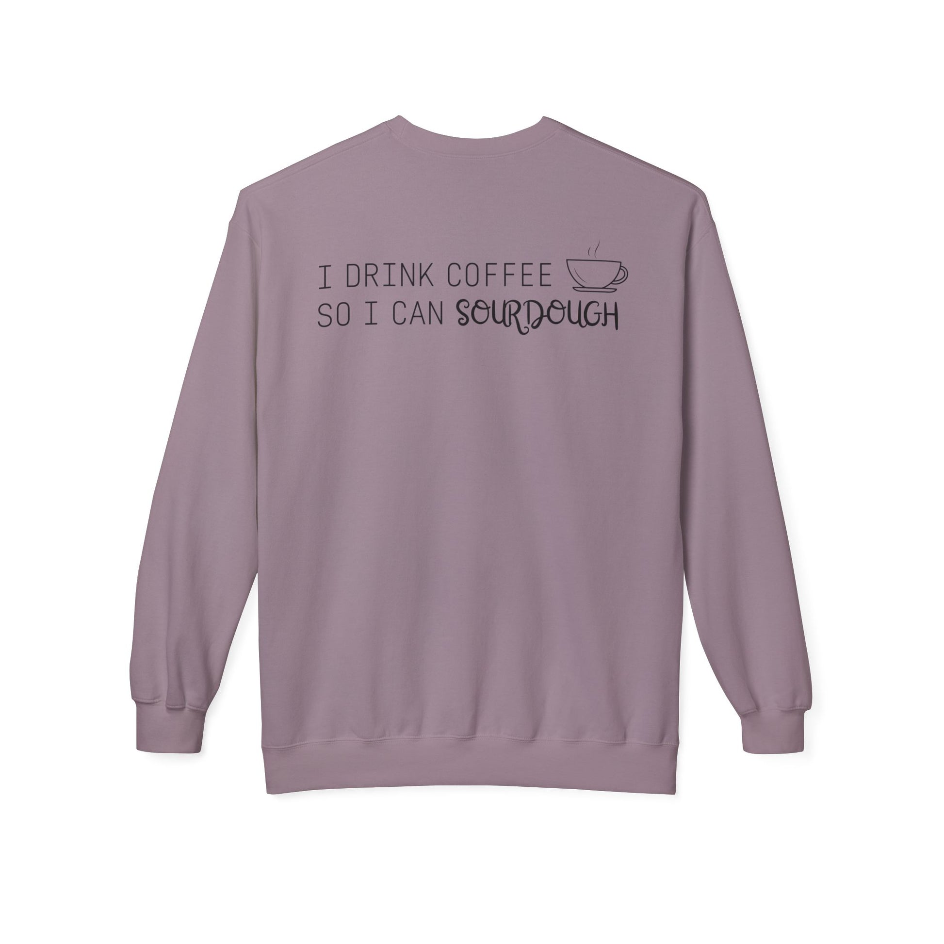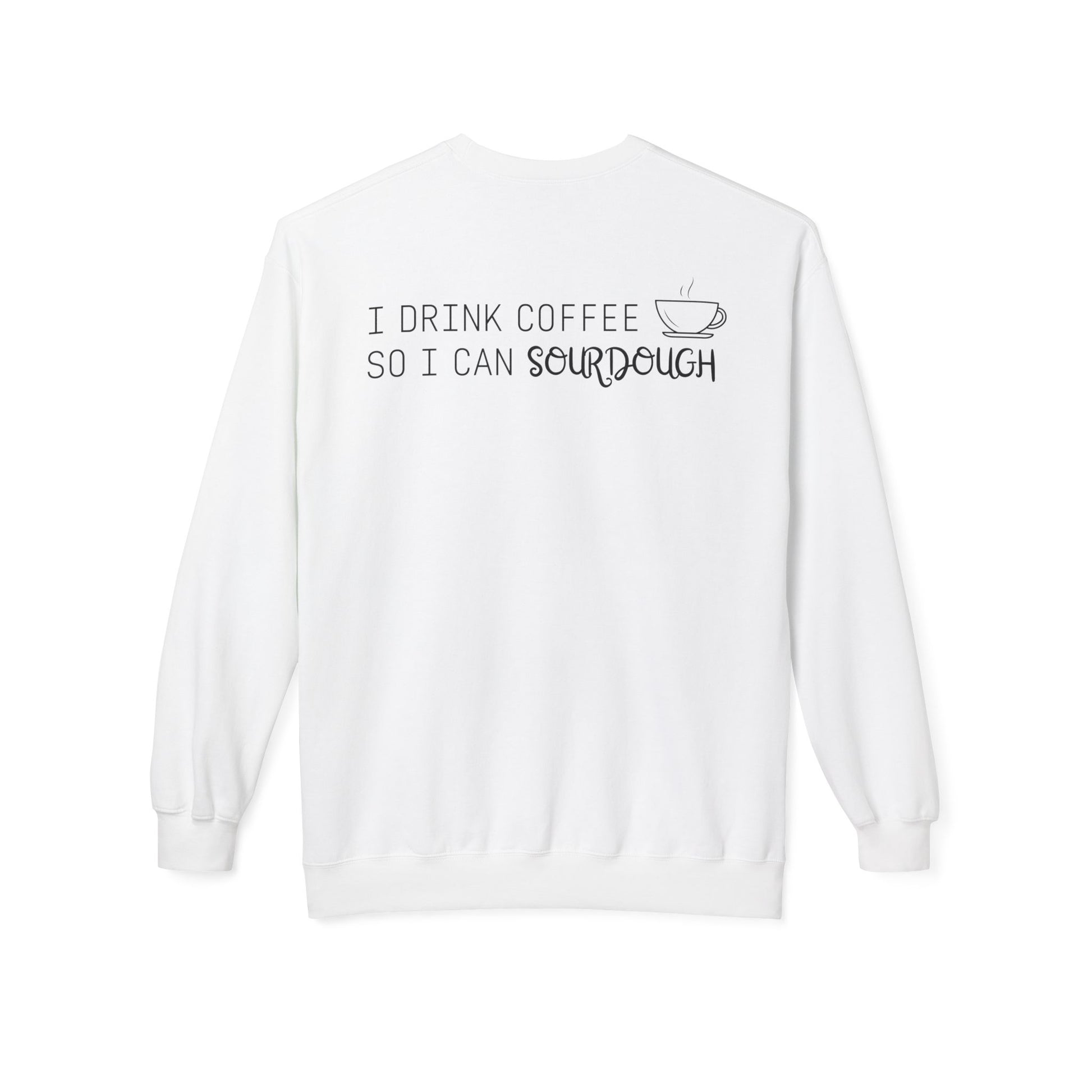 Fuel your passions in style with this double-sided crewneck made for the true coffee-and-sourdough crowd.