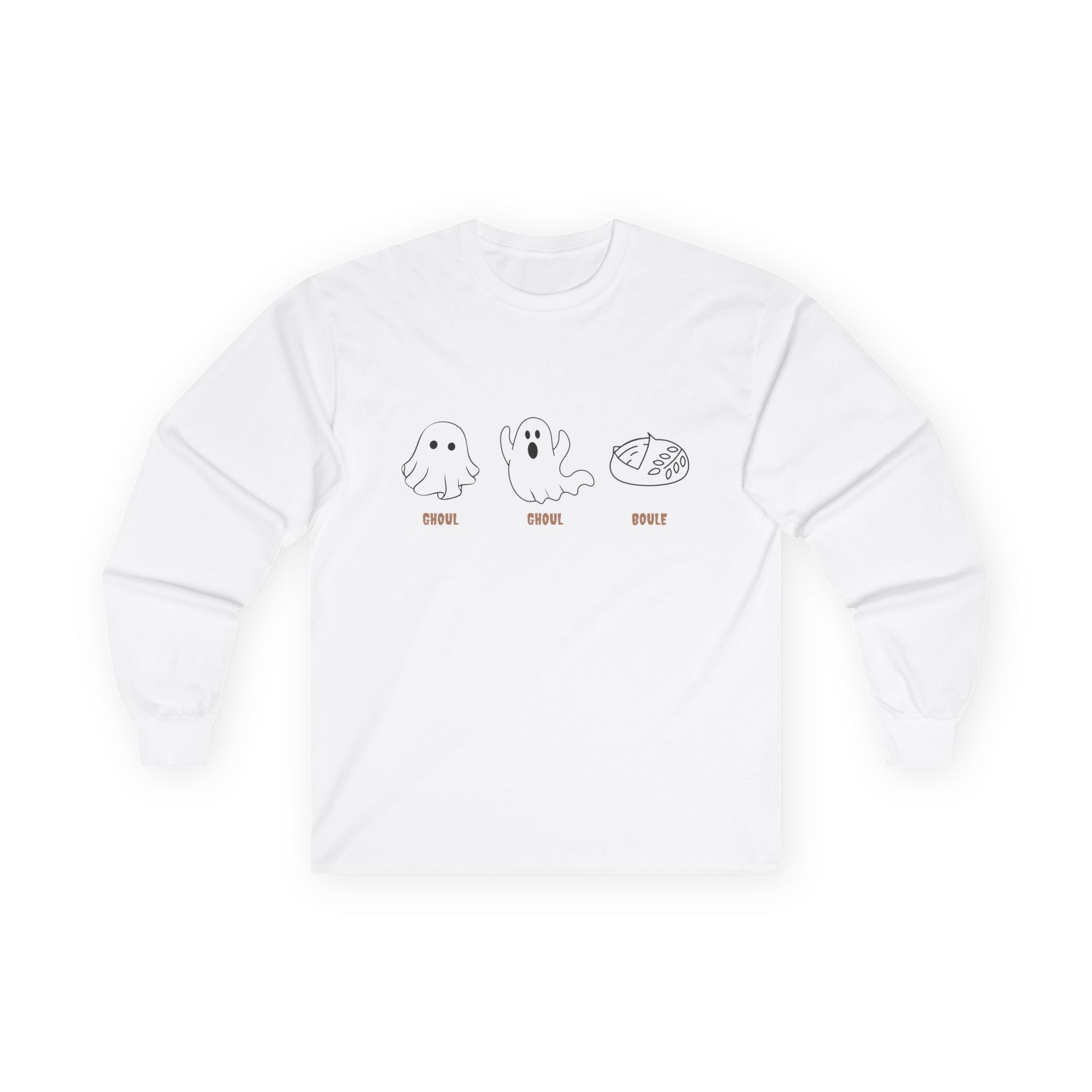 Ghost Themed Unisex Long Sleeve Tee | Cute Graphic Tee, Halloween Shirt, Casual Wear, Gift for Friends, Spooky Season Apparel